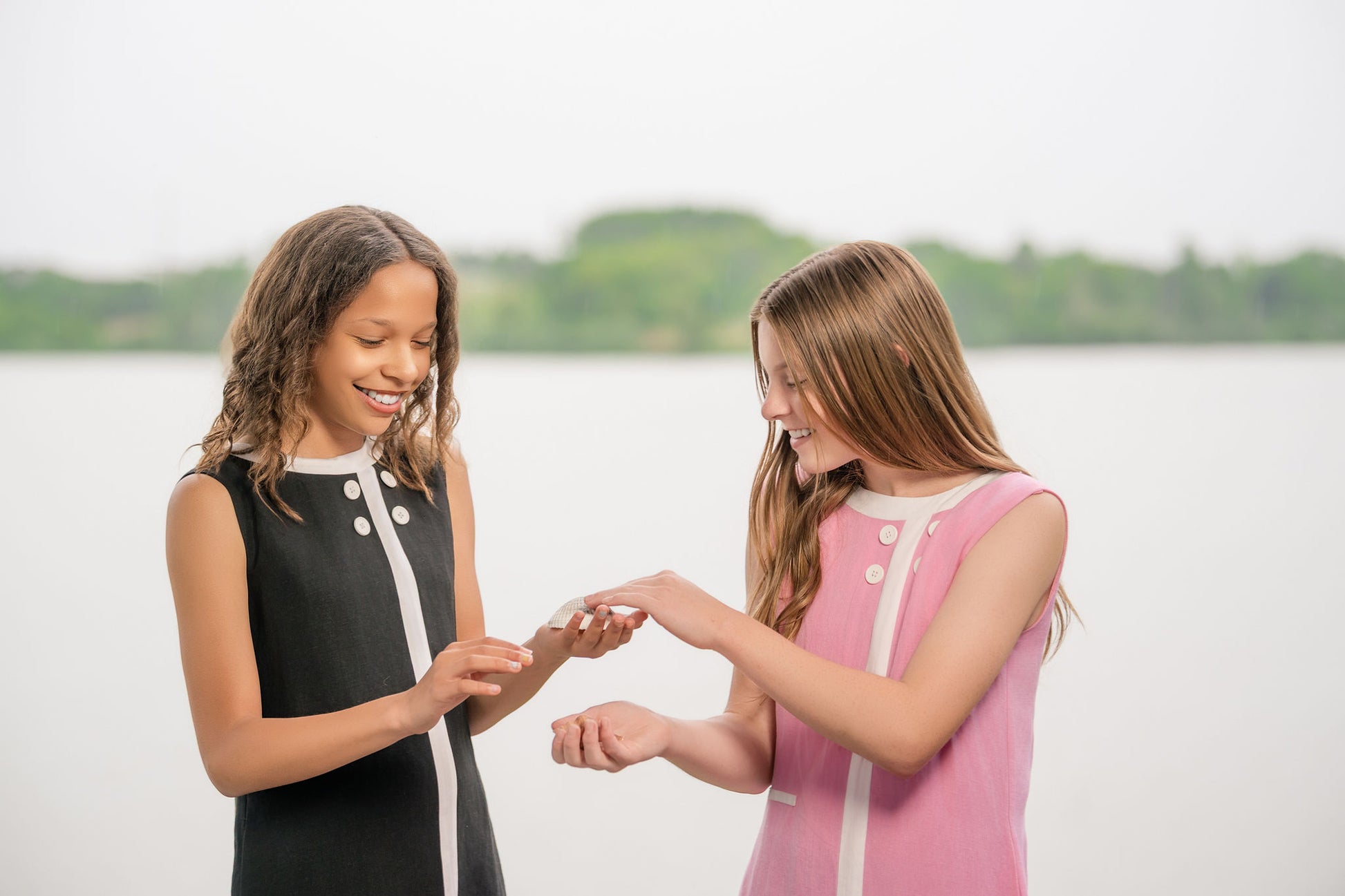 A little one’s dream for sunlit seaside days, this linen dress flows with effortless elegance. Delicate ribbon trim and charming front and back buttons add classic charm, while the unique overlay back creates a head-turning finish. Soft satin lining keeps her comfortable all day, and the back button closure makes dressing simple.