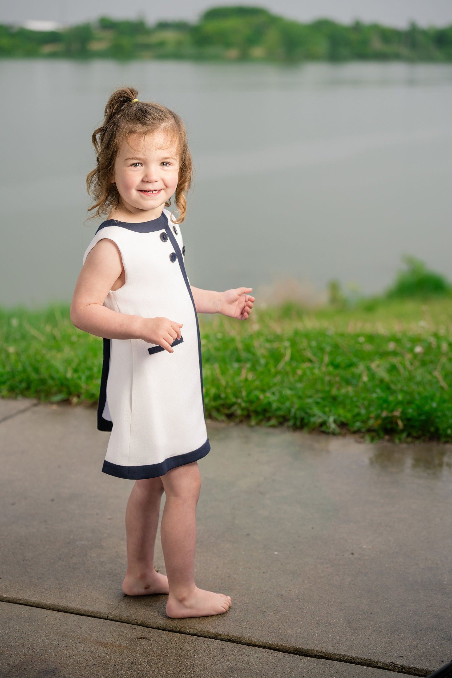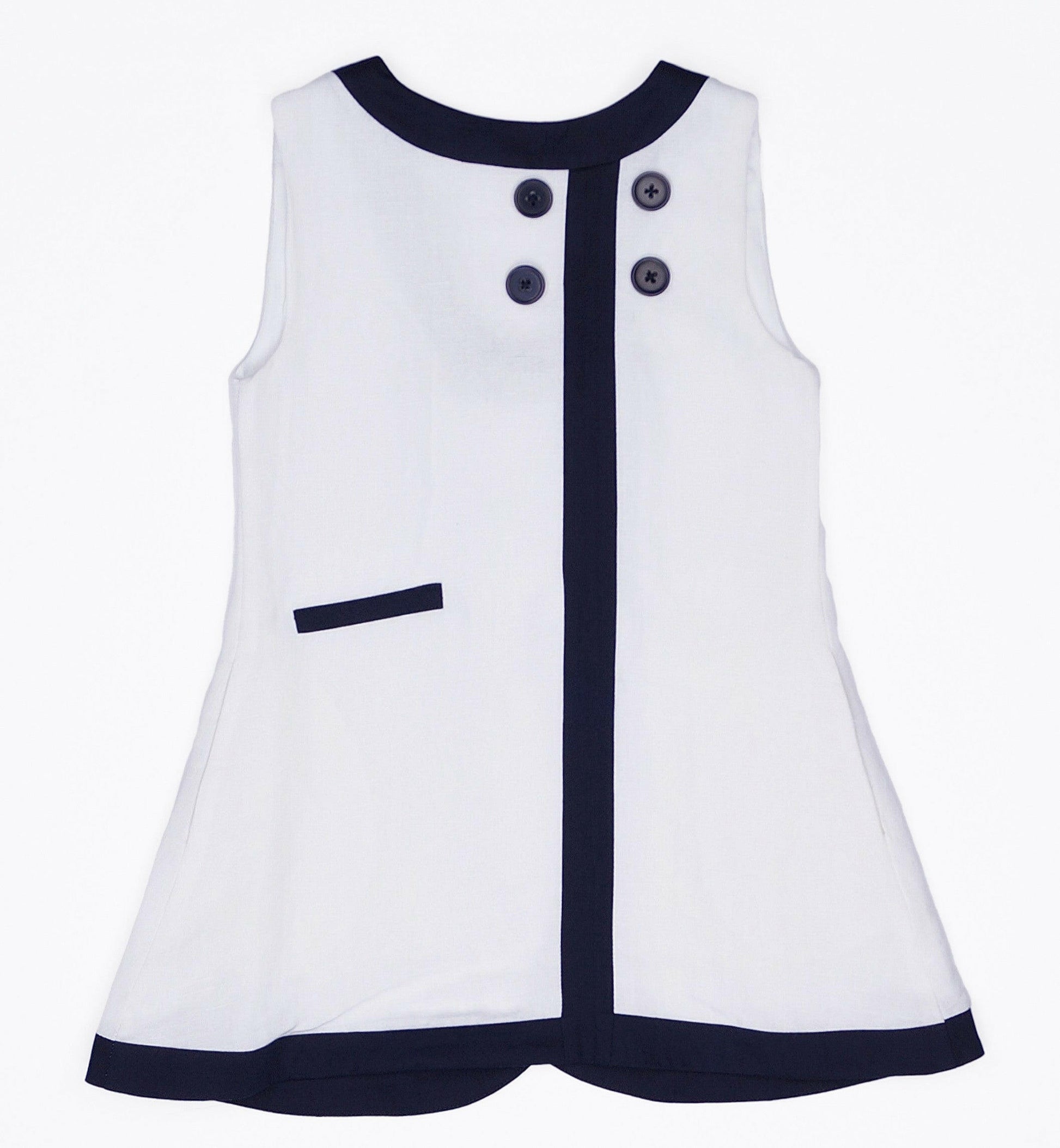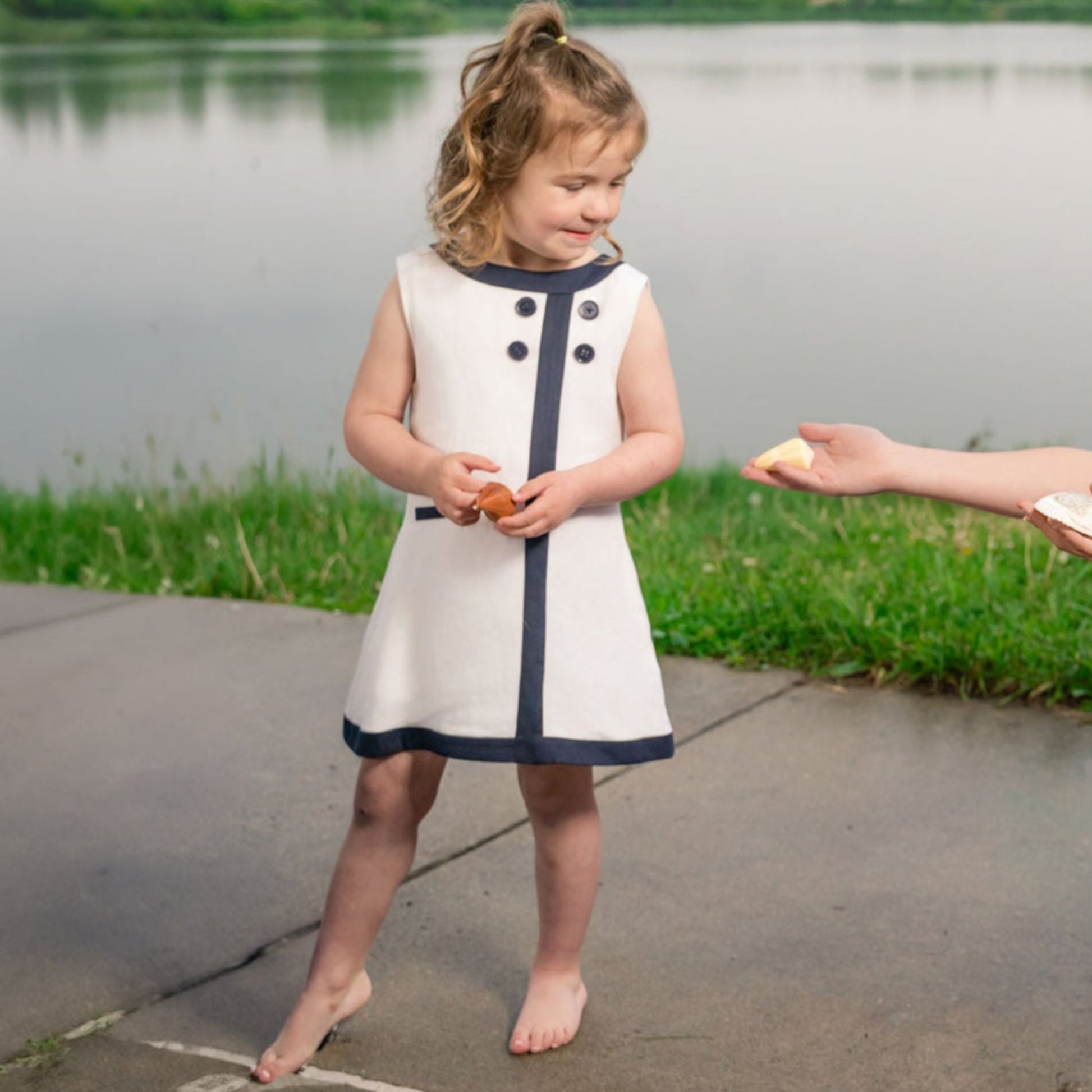 A little one’s dream for sunlit seaside days, this linen dress flows with effortless elegance. Delicate ribbon trim and charming front and back buttons add classic charm, while the unique overlay back creates a head-turning finish. Soft satin lining keeps her comfortable all day, and the back button closure makes dressing simple.